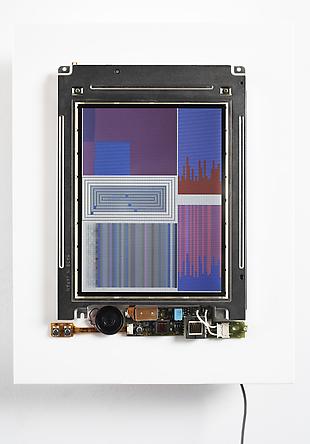 Whitney museum audio guideColor Panel v1.0 was made in 1999. I took a used Apple 280C computer. Disassembled it. Took it all to pieces. Took the case off of it, and then I reassembled it so that the screen was on the front of the panel, and the body of the computer was on the back. I turned the screen vertically instead of horizontally, which it usually was. And then I wrote a piece of software, custom, for that display. That was my canvas, so I want to make a time-based color study. I want to make a painting that would change continually and never repeat itself. It was an experiment in dynamic painting. It's hard to describe how little display power and computing power there was on that computer. Even the simplest electronic device today has more power than that computer did, so I was limited in what I could do. I had a software method that I called variable expansion, so I make a simple rule, and I get that running, and it's in a small loop, which is like a paragraph in code writing. So I have a little loop that's running. Then I begin to improvise with the loop by taking the parts that are set, and turning them into variables, expanding their range, and seeing what happens. So in the lower left hand corner of the Color Panel I had squares of different colors bouncing back and forth in a rectangle. So there were lots of choices what to do then. Do they overlap? Did they grow? Did they shrink? How do they mix? That kind of thing. |