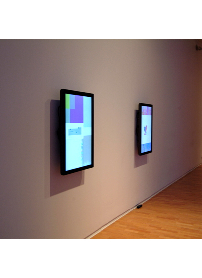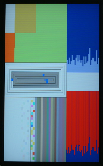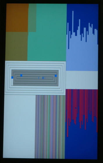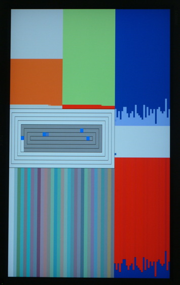 Color Panel v 1.5 adheres to concepts developed in the earlier version, Color Panel v1.0. It remains a time based color study but with more possibilities and color spaces to explore. Added parameters increase the range of compositional variations while the capacity for millions of colors, made possible by the improved computer technology, expands the variety and range of colors displayed. |