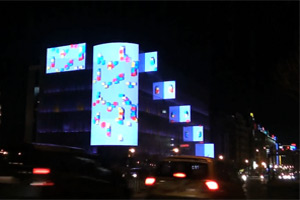 The images in the "Traffic" software change continually and never repeat. Colors vary, street size and number, even the number of cars on the street changes. It can be shown in real time from a computer, as HD video or standard video. As a video, "Traffic" is a 10 minute long selection. The software version constantly evolves as new traffic patterns are explored.