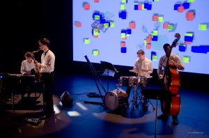 An installation by artist John Simon, accompanied by original music by John Chin for jazz quartet with interactive electronics