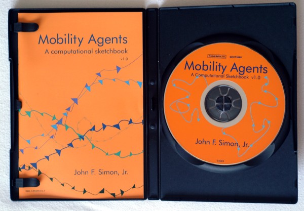 An artist's book and software CD, Mobility Agents traces the development of John Simon's dynamic drawing tools. Influenced by the notebooks of Paul Klee, Simon transformed diagrams of moving lines into software drawing tools. The software is an electronic book ending with a fully functional drawing program that lets the user explore.