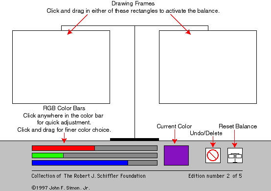 Paul Klee saw a similarity between the idea of a physical balance and the sense of perceptual balance needed to arrange color in a composition. While Color Balance activates Klee's ideas, it is limited to his color model. Its behavior may be modified because the balance is realized as software. Open to both the reconfiguration of the programmer and the manipulations of the viewer, Color Balance is a system for expanding the possibilities of color.